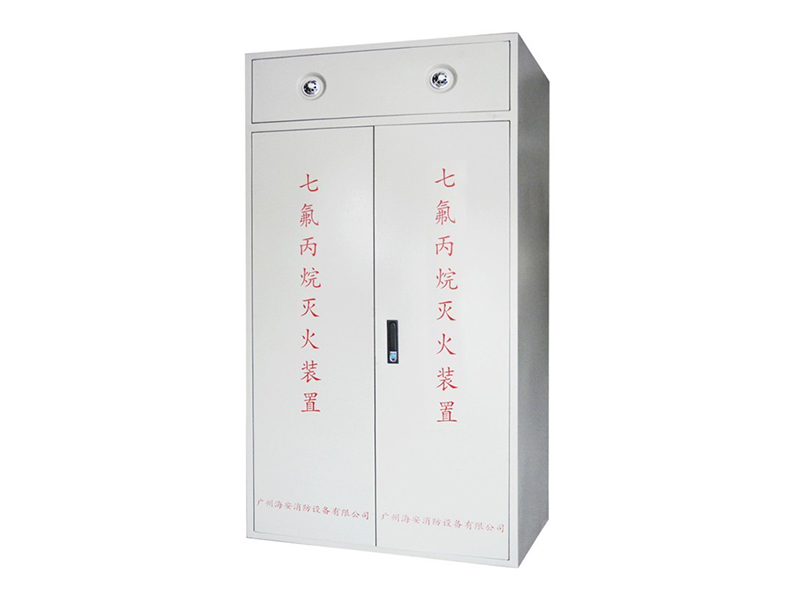 七氟丙烷柜式灭火装置的柜体采用碳钢板制造;